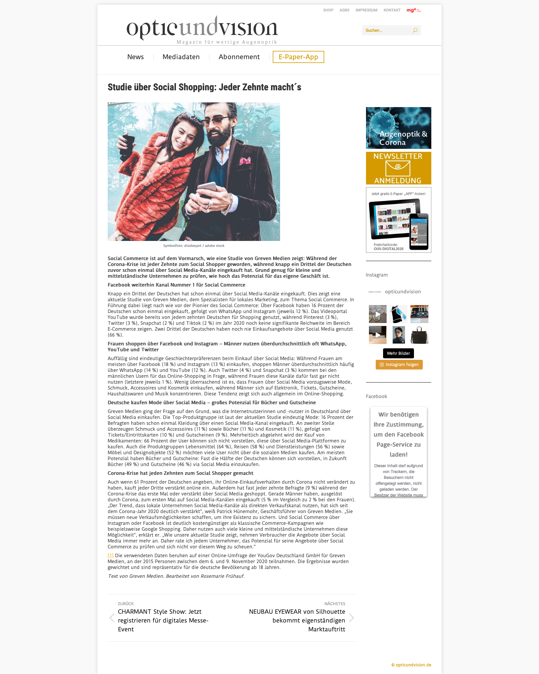 Presseartikel zu unserer Pressemitteilung „Studie von Greven Medien zeigt: Social Commerce ist für die Ansprache von Gutverdienenden attraktiv“